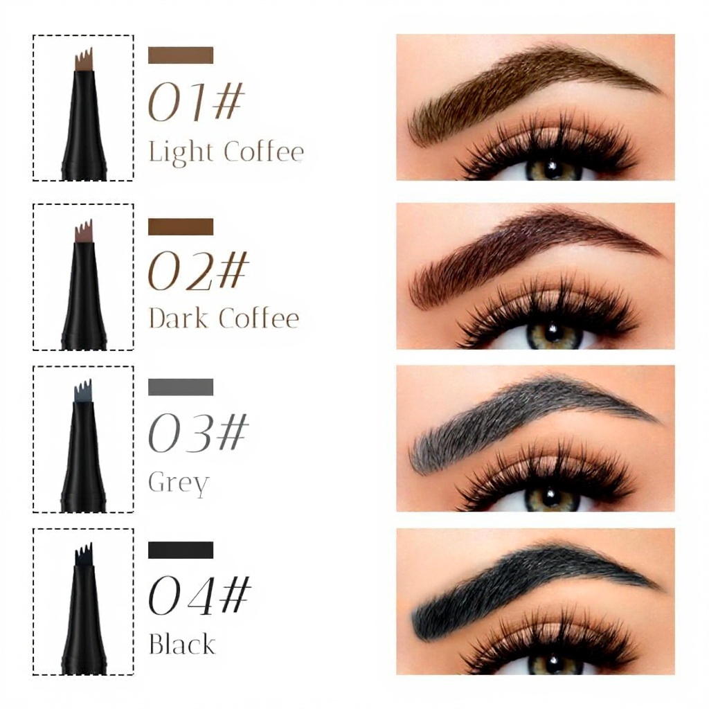 Le crayon est disponible en quatre coloris : 2# Marron foncé, 3# Gris, 1# Brun clair et 4# Noir, adaptés à différentes teintes de cheveux et de peau. Fabriqué par TBLMPNE, il est léger et ergonomique, facilitant une prise en main confortable. Son design compact le rend pratique pour une utilisation nomade ou en voyage.