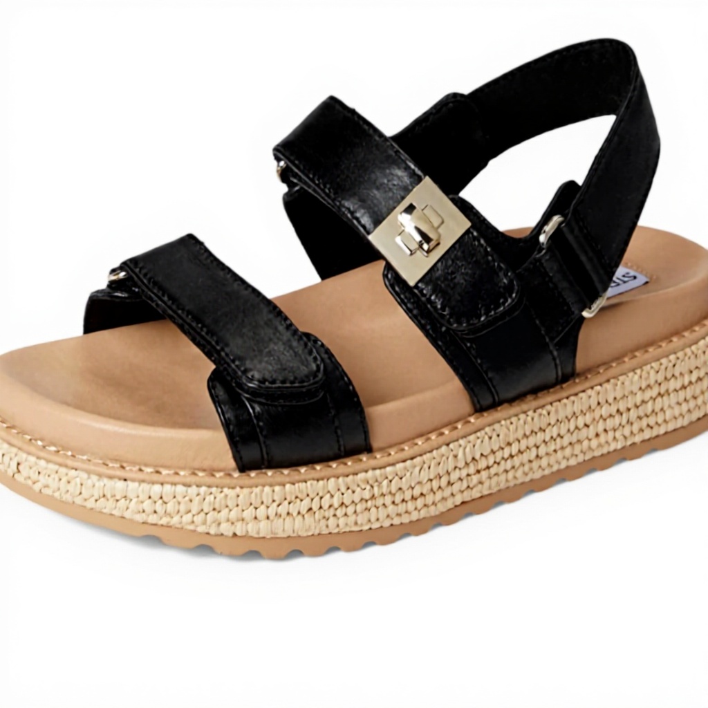 Les sandales Bigmona de Steve Madden se distinguent par leur design plat et leurs sangles ajustables, offrant un confort optimal pour un usage quotidien. Fabriquées en matériaux de qualité comme le cuir naturel et le raphia, elles allient durabilité et style décontracté. La sangle de cheville avec fermeture à bouton poussoir assure une tenue sécurisée et facile à ajuster.
