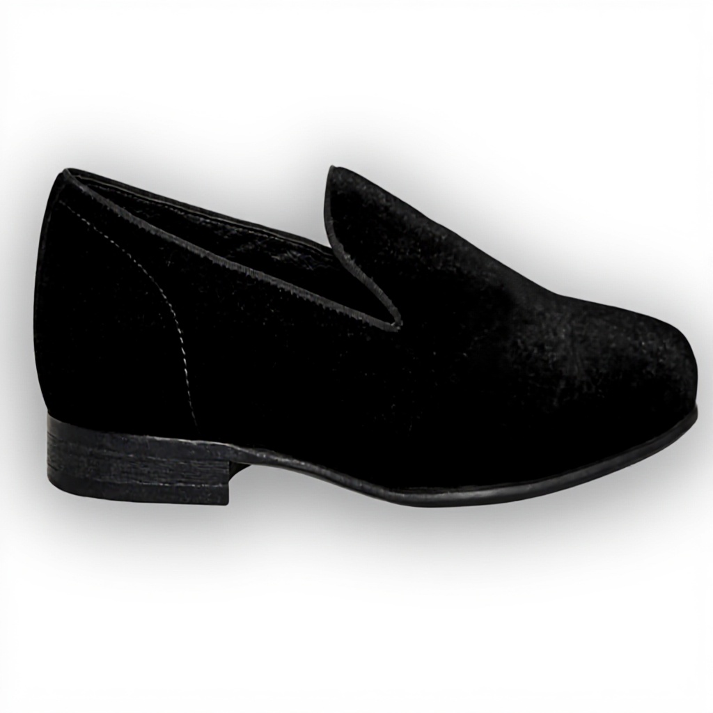 - Style intemporel avec le design en velours noir et le bout en amande.