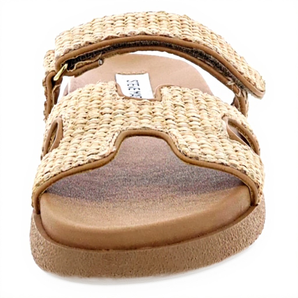 Cette sandale plate dispose d’une semelle profilée de 3,2 cm pour un léger surélevé et une traction améliorée. Disponible en plusieurs tailles (du 36 au 42 EU) et coloris comme Cuir Noir, Marron Clair Cuir, Raphia Naturel, Blanc Camel, et Blanc Noir, elle propose un ajustement réglable via sa sangle auto-agrippante. Les dimensions sont de 30,48 x 27,94 x 12,7 cm, conçue pour un port facile et sécurisé.